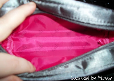 As you can see the bag was a boxy shape and was silver in color and had a satin finish to it. The inside was a bright pink and had the Ipsy logo branded all through it.